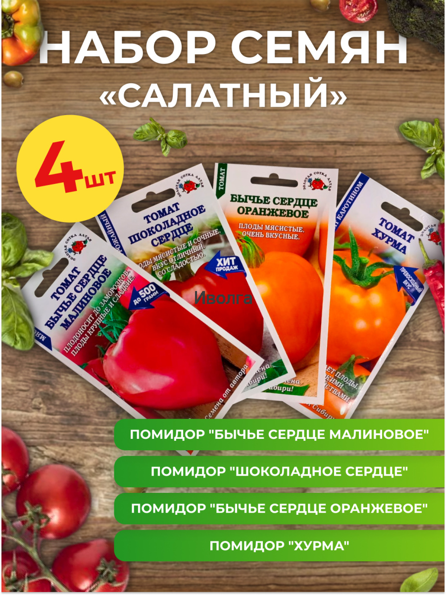 Набор сортов семян помидор, хорошо подходящих для свежих салатов и заготовок на зиму.