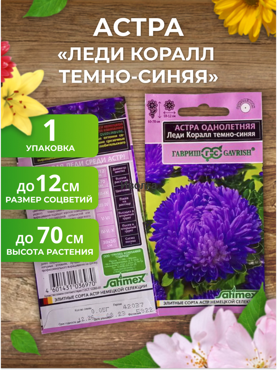 9. Астра однолетняя "Леди Коралл" темно-синяя  — 1 шт.