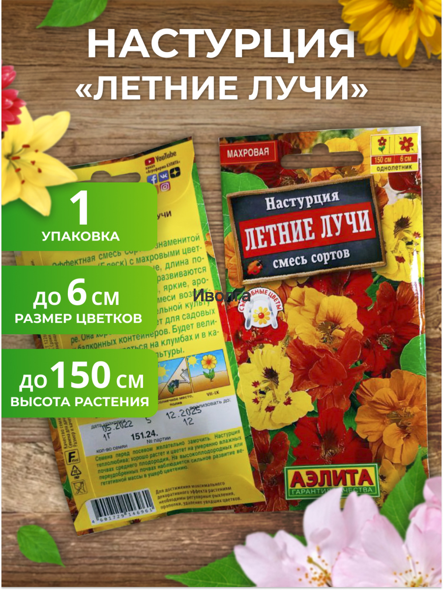 1. Настурция "Летние лучи" смесь сортов — 1 шт.