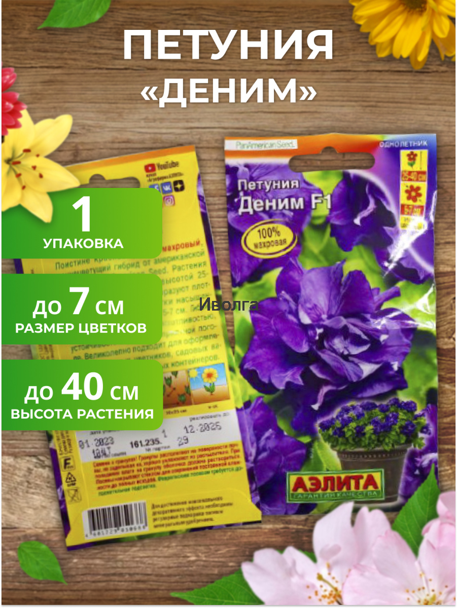 Петуния "Деним F1" - гибридная обильноцветущая петуния Деним поражает своими характеристиками. Это чудесное растение отличается компактными побегами с аккуратными листочками и изящными махровыми цветками, которых образуется так много, что кустик напоминает цветущее облачко. Гибрид отличается прекрасным внешним видом, ранним, продолжительным и очень дружным цветением, неприхотливостью и устойчивостью к неблагоприятным погодным условиям. Петуния незаменима в оформлении клумб, бордюров, вазонов, кашпо и балконных ящиков.